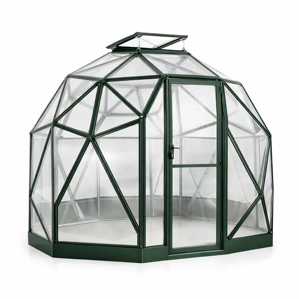 Structure en métal avec parois en polycarbonate transparent de 6 mm.